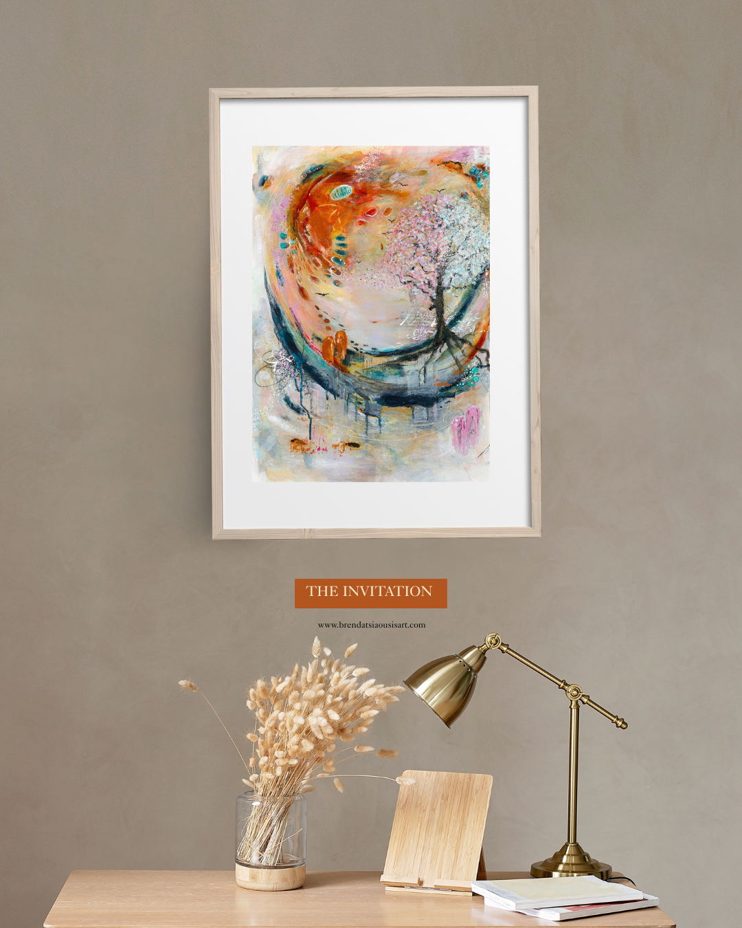 figures drawn toward the light. The Invitation is a visual reflection on transition, connection, and trust in the unseen. It whispers of sacred moments and new beginnings, asking only that we pause... and say yes.